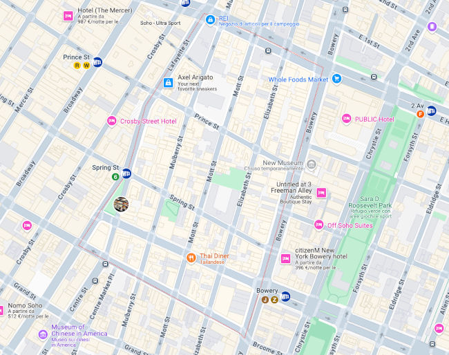 In questa immagine potete vedere i confini del (piccolo) quartiere NoLiTa a New York.