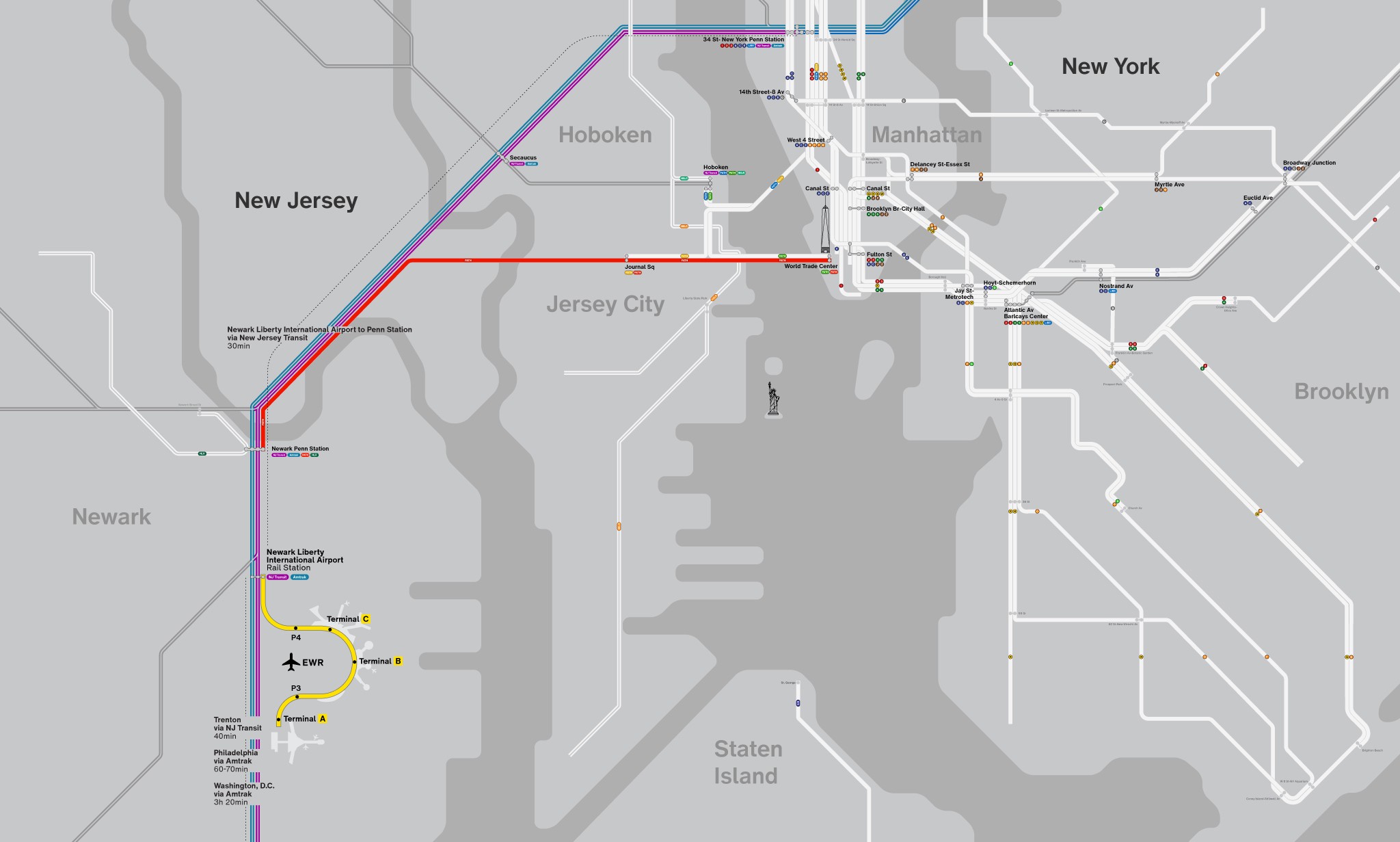 PATH-Servicekarte für Transfers vom Flughafen EWR Newark nach Downtown Manhattan